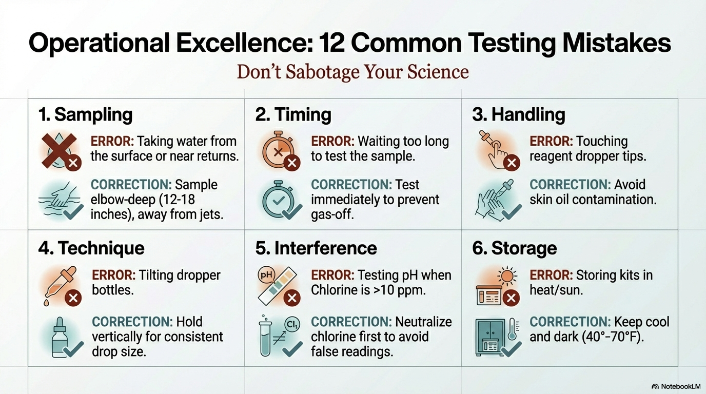 Even with the best kit, small errors can lead to big problems. Avoid these “water test fails”: